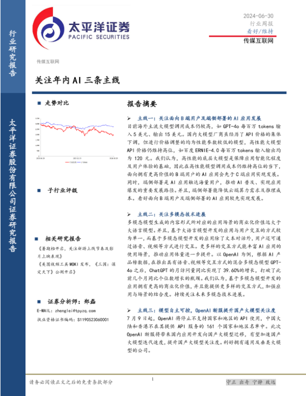 【太平洋证券】【20240630】传媒互联网行业周报:关注年内AI三条主线-23页 行业研究