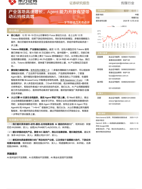 【东方证券】【202512】传媒行业动态跟踪 ——产业落地高速增长,Agent能力开放有望带动云持续高增-3页 证券期货研究报告