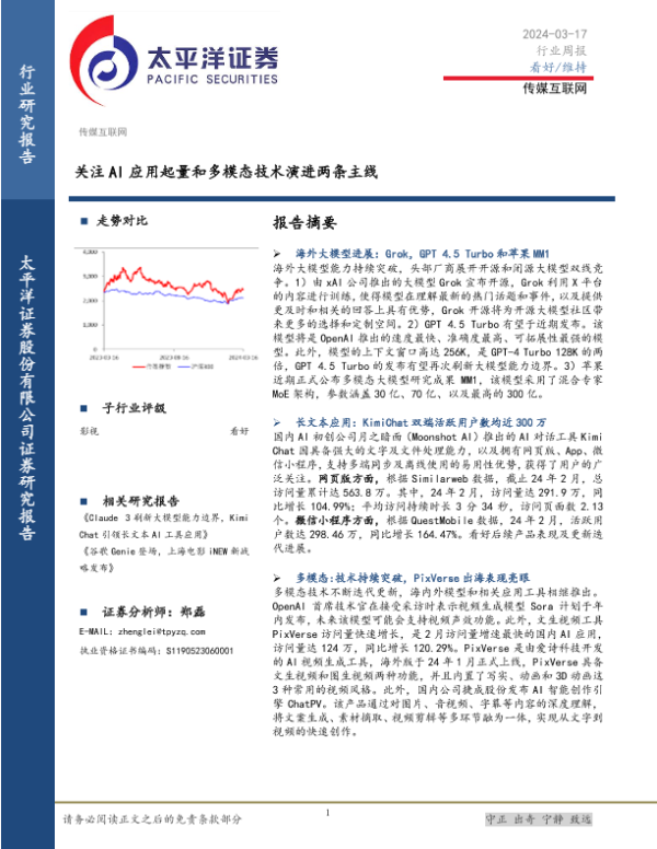 【太平洋证券】【20240317】传媒互联网行业周报:关注AI应用起量和多模态技术演进两条主线-27页 行业研究