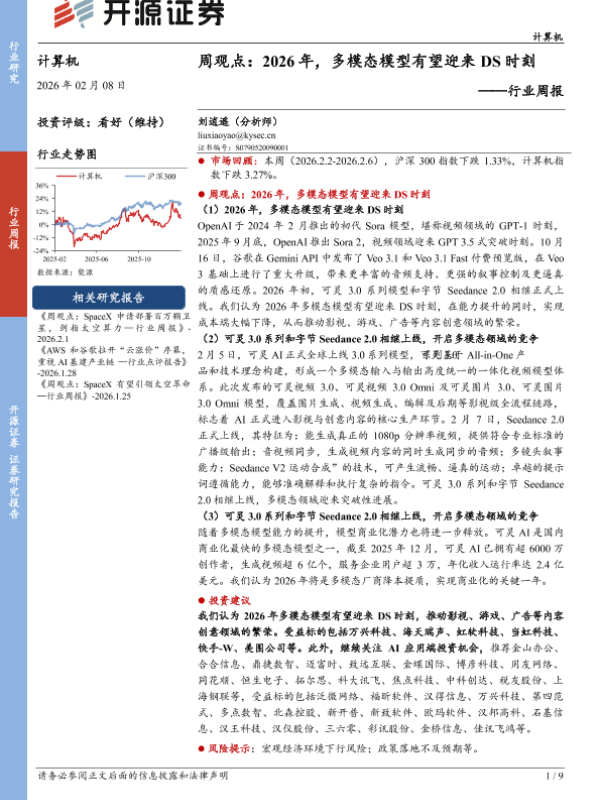 【开源证券】【202602】计算机行业周报:2026年,多模态模型有望迎来DS时刻-9页 证券期货研究报告