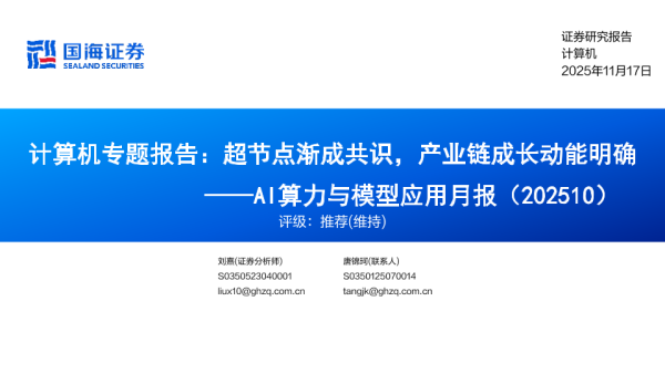 【国海证券】【202511】计算机专题报告:超节点渐成共识,产业链成长动能明确 ——A I算力与模型应用月报(202510)-54页 证券期货研究报告