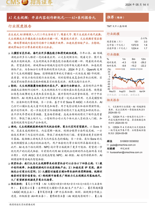 【海通证券】【20240514】传媒行业深度报告-AI%2b系列报告九:AI文生视频,开启内容创作新纪元-36页 行业研究