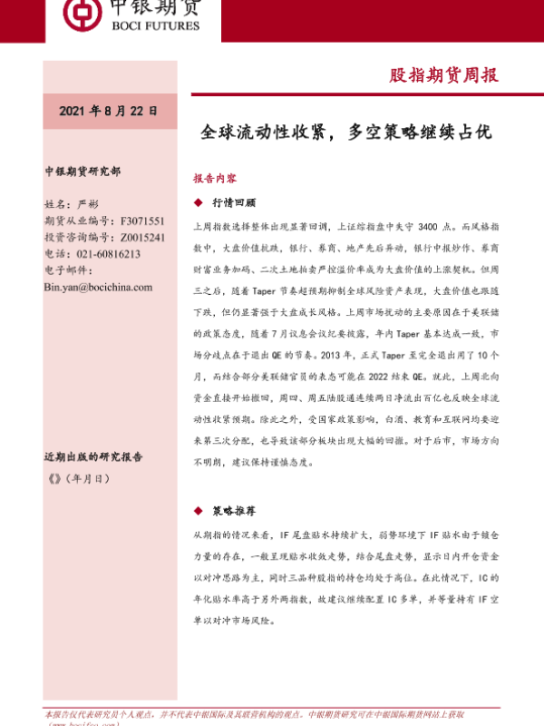 【中银期货】【20210822】股指期货周报_全球流动性收紧_多空策略继续占优-9页 行业研究
