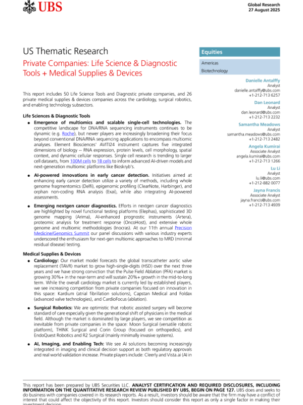 【UBS Securities LLC】【202508】Private Companies Life Science& Diagnostic Tools+ Medical Supplies& Devices-135页 行业研究