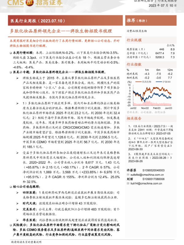 【海通证券】【20230724】20230724-招商证券-医美行业周报:多肽化妆品:发展迅速,应用场景多样-11页 行业研究