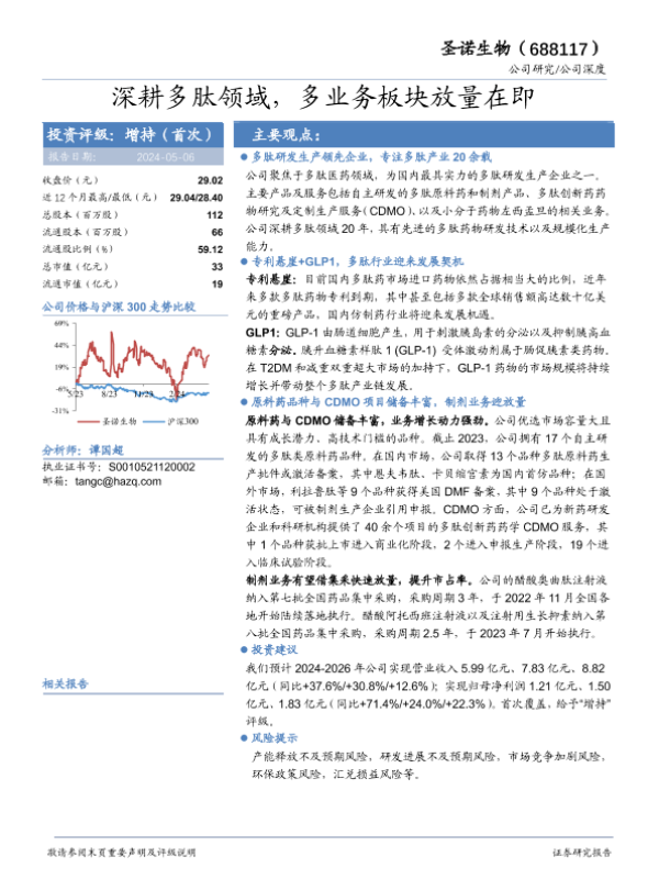【华安证券】【20240506】圣诺生物(688117)深耕多肽领域,多业务板块放量在即-29页 行业研究
