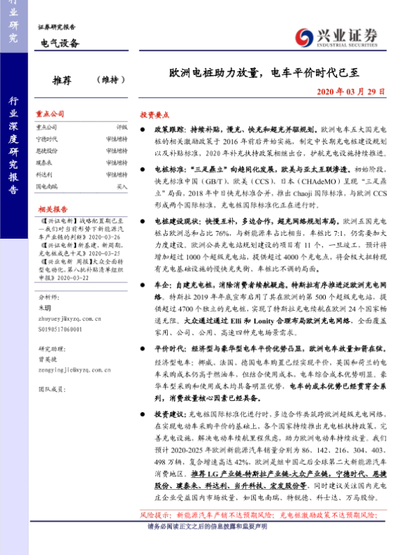 【兴业证券】【20200329】欧洲电桩助力放量,电车平价时代已至-24页 行业研究