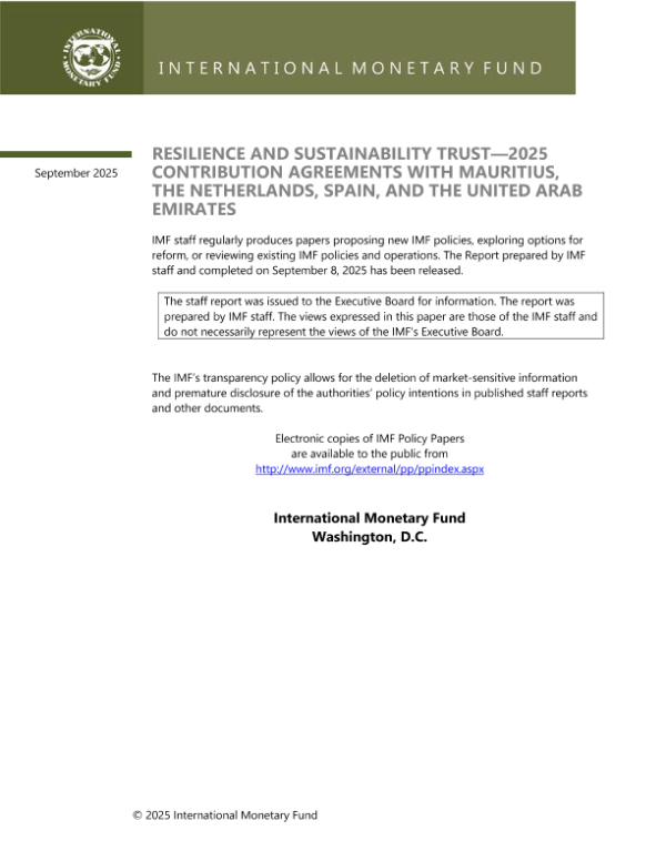 【国际货币基金组织】【202509】RESILIENCE AND SUSTAINABILITY TRUST―2025 CONTRIBUTION AGREEMENTS WITH MAURITIUS, THE NETHERLANDS, SPAIN, AND THE UNITED ARAB EMIRATES-55页 政策文件