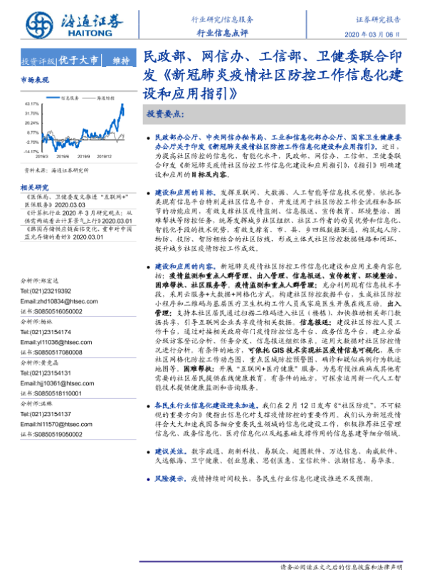 【海通证券】【20200306】信息服务行业信息点评:民政部、网信办、工信部、卫健委联合印发《新冠肺炎疫情社区防控工作信息化建设和应用指引》-2页 行业研究