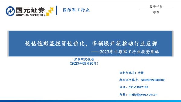 【国元证券】【20230520】2023年中期军工行业投资策略:低估值彰显投资性价比,多领域开花推动行业反弹-55页 行业研究