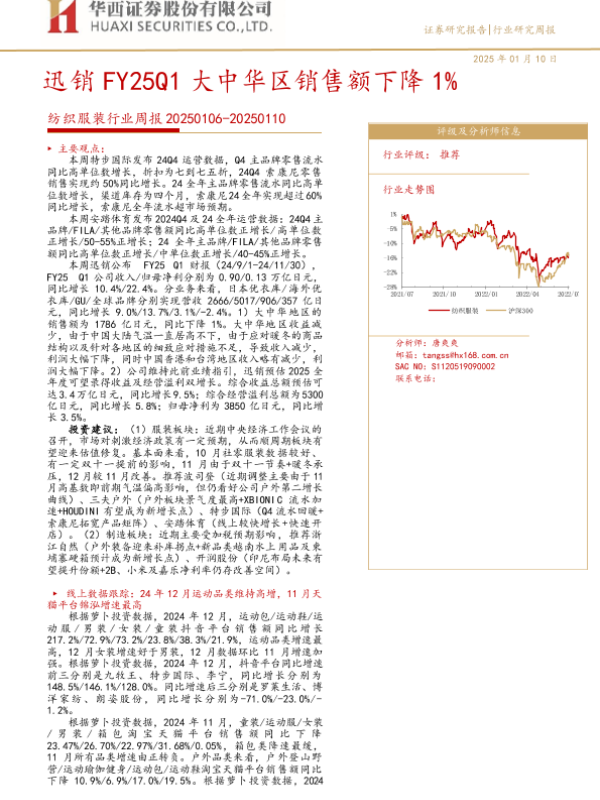 【华西证券】【20250110】20250110-华西证券-纺织服装行业周报:迅销FY25Q1大中华区销售额下降1%-38页 行业研究
