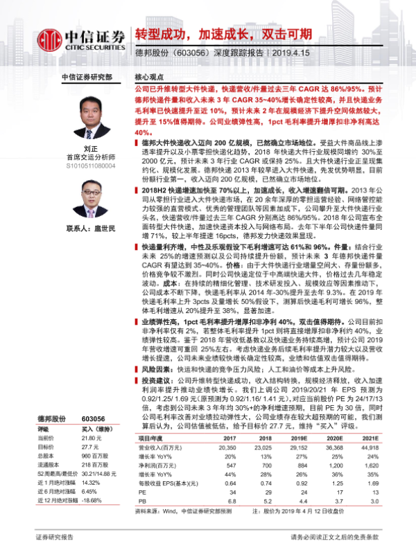 【中信证券】【20190415】20190415-中信证券-德邦股份-603056.SH-深度跟踪报告:转型成功,加速成长,双击可期-25页 行业研究