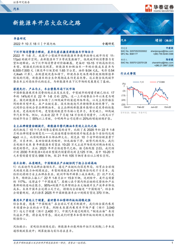 【华泰证券】【20221018】汽车专题研究:新能源车开启大众化之路-26页 行业研究