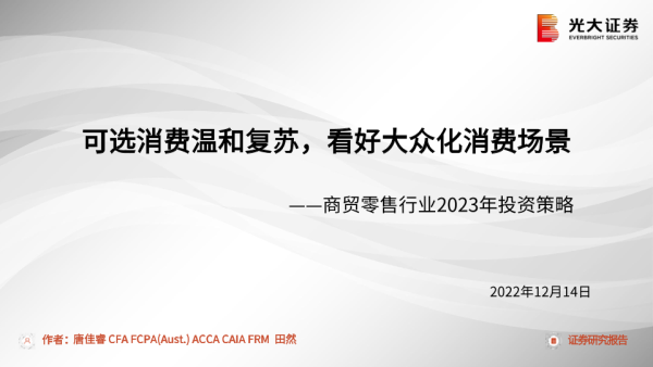 【光大证券】【20221214】商贸零售行业2023年投资策略:可选消费温和复苏,看好大众化消费场景-49页 行业研究