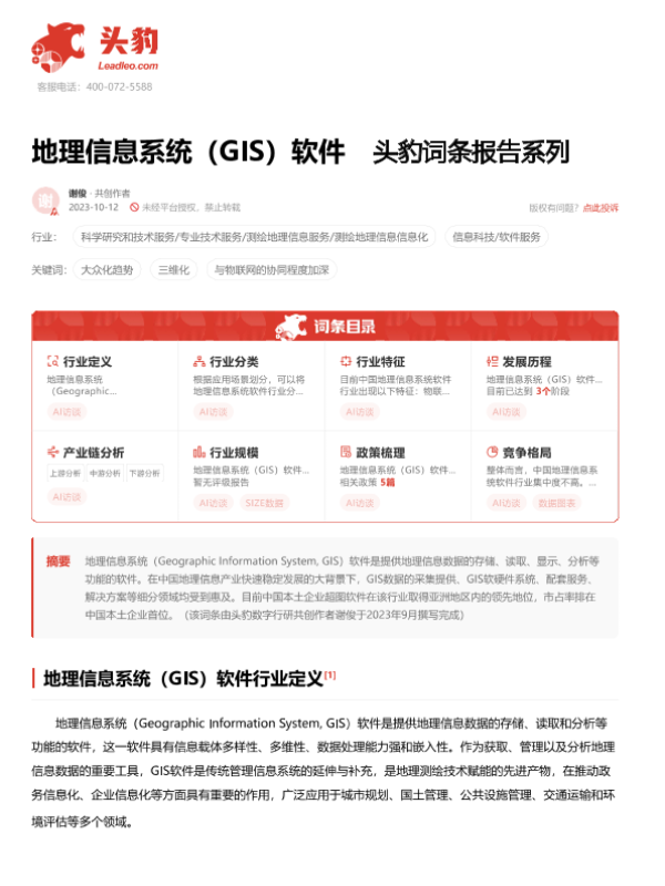 【头豹研究院】【20240118】地理信息系统(GIS)软件 头豹词条报告系列-17页 行业研究