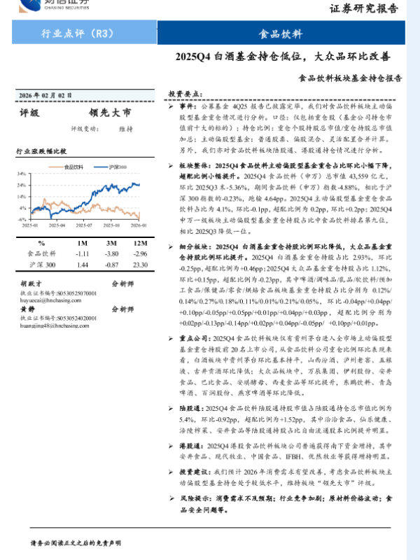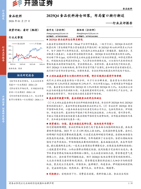 【开源证券】【202601】2025Q4食品饮料持仓回落,布局窗口渐行近-9页 证券期货研究报告