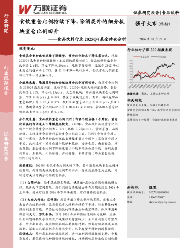 【万联证券】【2026】食饮重仓比例持续下降,除酒类外的细分板块重仓比例回升-9页 证券期货研究报告