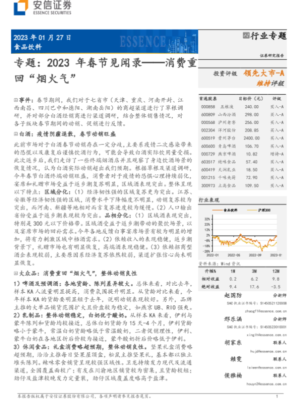 【安信证券】【20230127】食品饮料行业专题:2023年春节见闻录——消费重回“烟火气”-24页 行业研究