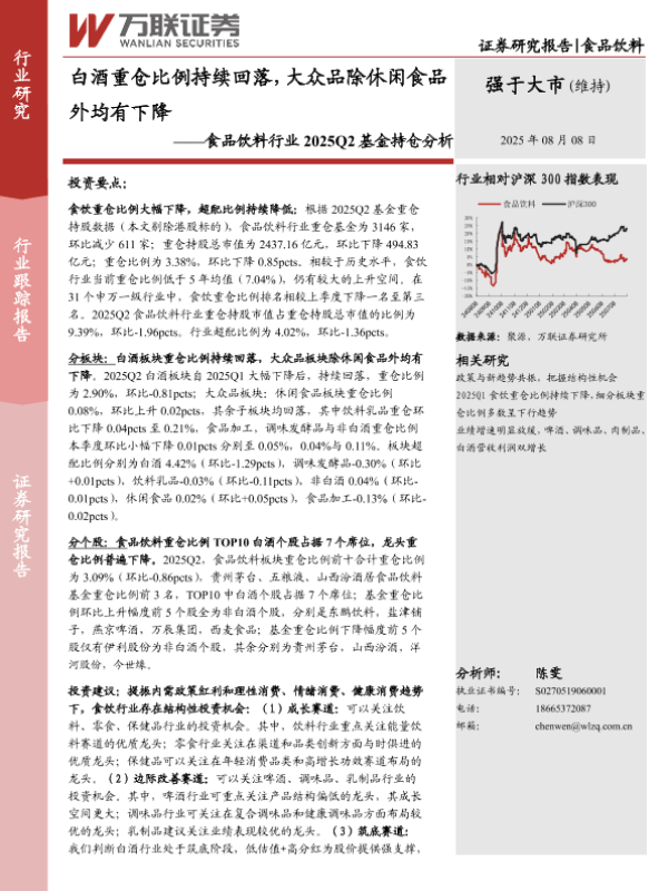 【万联证券】【202508】食品饮料行业 2025Q2基金持仓分析——白酒重仓比例持续回落,大众品除休闲食品外均有下降-13页 证券期货研究报告