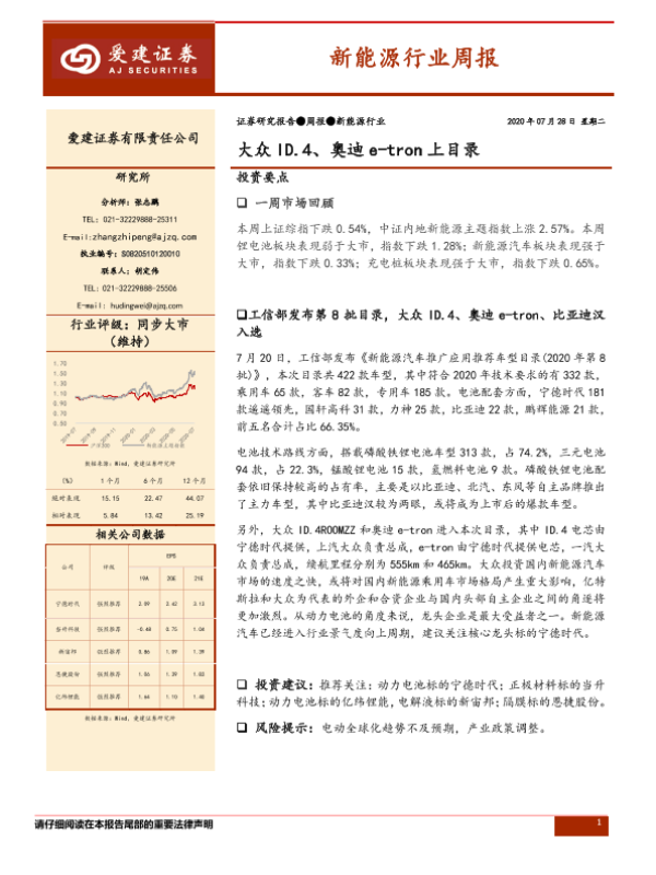 【爱建证券】【20200728】20200728-爱建证券-新能源行业周报:大众ID.4、奥迪e-tron上目录-14页 行业研究