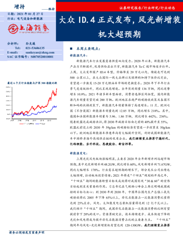 【上海证券】【20210127】电气设备和新能源:大众ID.4正式发布,风光新增装机大超预期-20页 行业研究