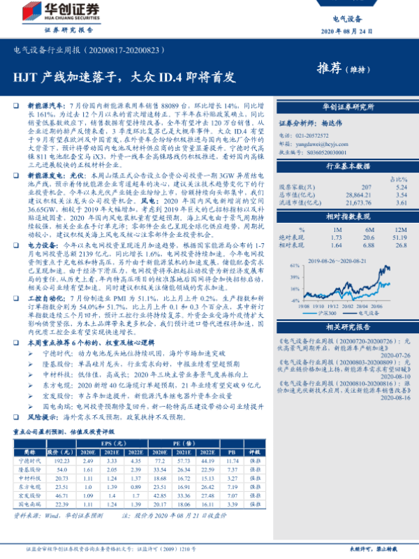 【华创证券】【20200824】电气设备行业周报:HJT产线加速落子,大众ID.4即将首发-22页 行业研究