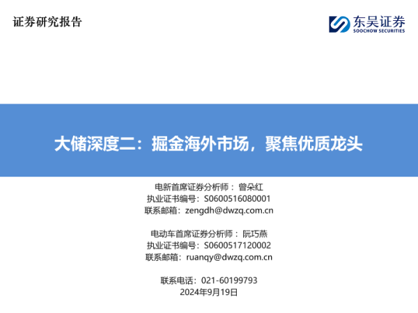 【东吴证券】【20240919】电新行业大储深度二:掘金海外市场,聚焦优质龙头-57页 行业研究