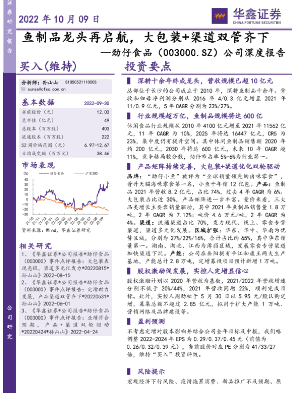 【华鑫证券】【20221009】劲仔食品(003000.SZ)公司深度报告:鱼制品龙头再启航,大包装+渠道双管齐下-37页 行业研究