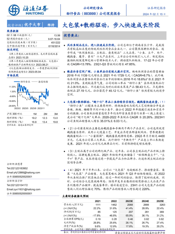 【海通证券】【20240215】20240215-海通证券-劲仔食品-003000.SZ-公司深度报告:大包装+散称驱动,步入快速成长阶段-28页 行业研究
