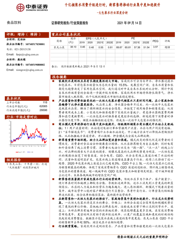 【中泰证券】【20210914】大包装水行业深度分析:千亿桶装水消费升级进行时,新零售将推动行业集中度加速提升-25页 行业研究