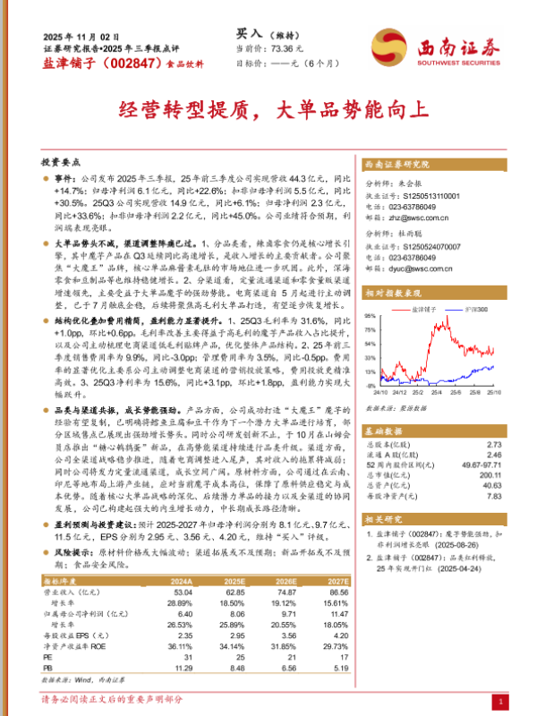 【西南证券】【202511】盐津铺子(002847)2025年三季报点评-5页 证券期货研究报告
