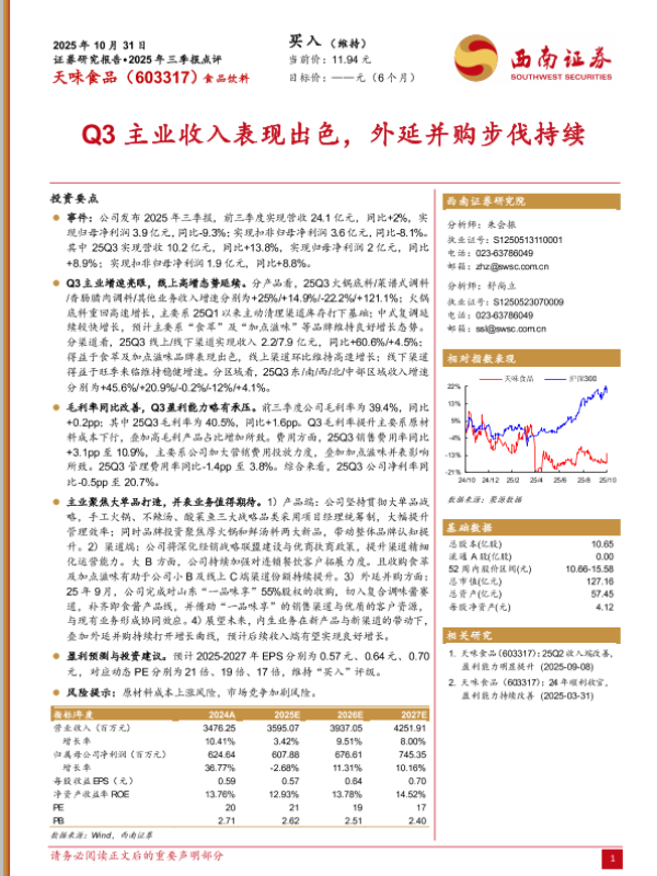 【西南证券】【2025】天味食品(603317)2025年三季报点评-5页 证券期货研究报告