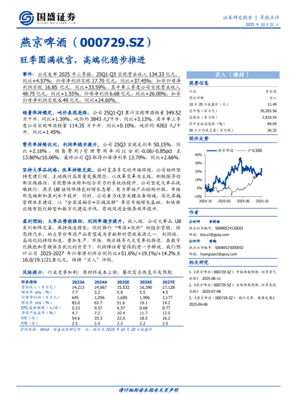 【爱建证券】【202512】大单品战略成效显著,成长动能持续释放——燕京啤酒(000729.SZ)首次覆盖报告-6页 证券期货研究报告
