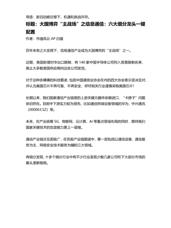 【市值风云】【20241231】大国博弈“主战场”之信息通信:六大细分龙头一键配置-28页 行业研究