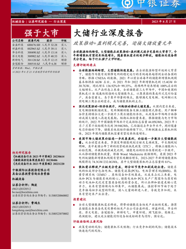 【中银证券】【20230828】大储行业深度报告-政策推动+盈利模式完善-迎接大储放量元年-84页 行业研究