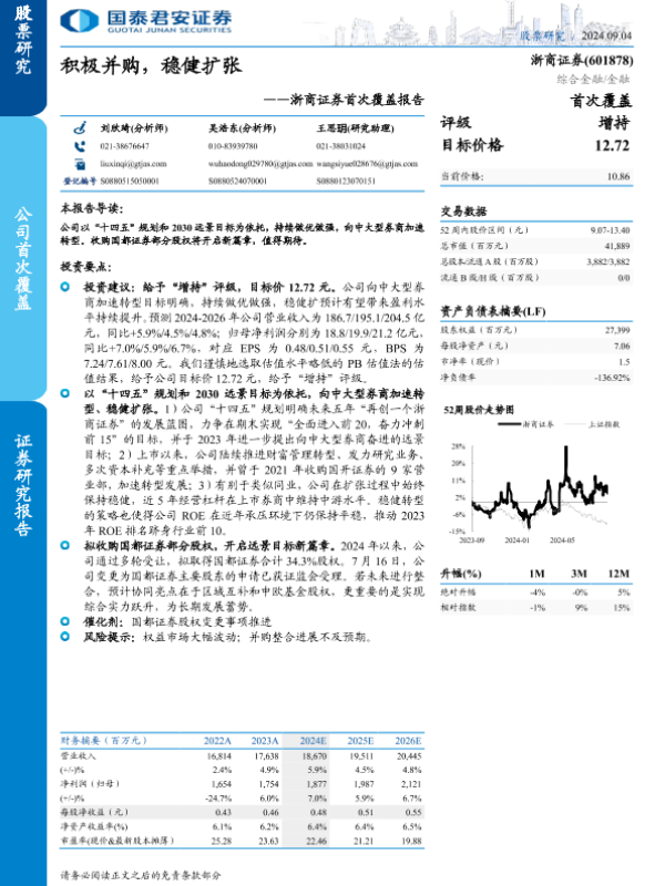 【国泰君安证券】【20240904】浙商证券(601878)首次覆盖报告:积极并购,稳健扩张-15页 行业研究