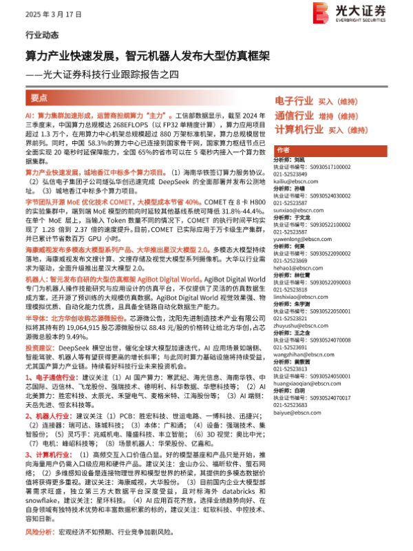 【光大证券】【20250317】算力产业快速发展,智元机器人发布大型仿真框架-18页 行业研究