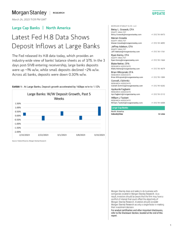 【Morgan Stanley】【20230324】Large Cap Banks Latest Fed H.8 Data Shows Deposit Inflows-25页 行业研究