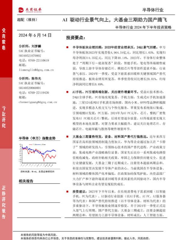 【东莞证券】【20240614】半导体行业2024年下半年投资策略:AI驱动行业景气向上,大基金三期助力国产腾飞-55页 行业研究