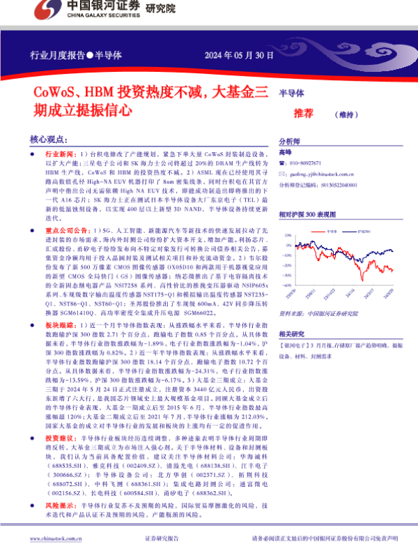 【银河证券】【20240530】半导体行业月度报告:CoWoS、+HBM投资热度不减,大基金三期成立提振信心-11页 行业研究