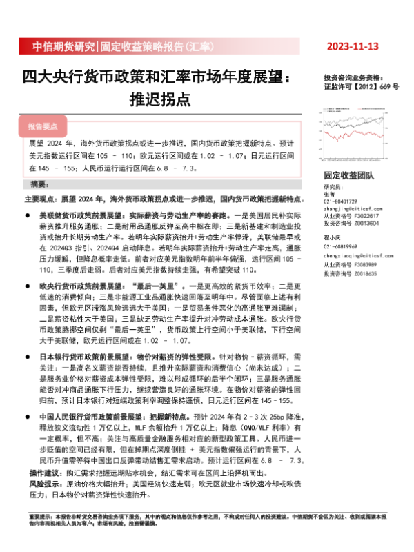 【中信期货】【20231113】固定收益策略报告(汇率):四大央行货币政策和汇率市场年度展望,推迟拐点-47页 行业研究