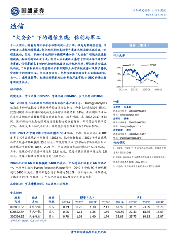 【国盛证券】【20221023】“大安全”下的通信主线:信创与军工-15页 行业研究