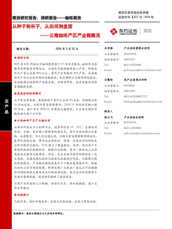 【东方证券】【202603】农产品期货研究报告:调研报告——咖啡期货从种子到杯子,从田间到盘面——云南咖啡产区产业链概况-25页 证券期货研究报告