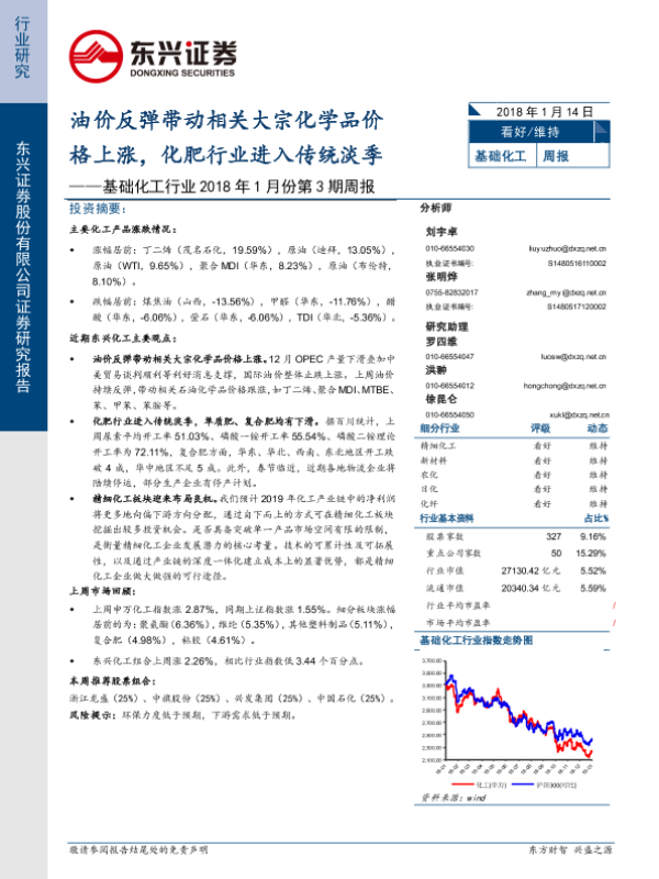【东兴证券】【20180114】基础化工行业2018年1月份第3期周报:油价反弹带动相关大宗化学品价格上涨,化肥行业进入传统淡季-37页 行业研究