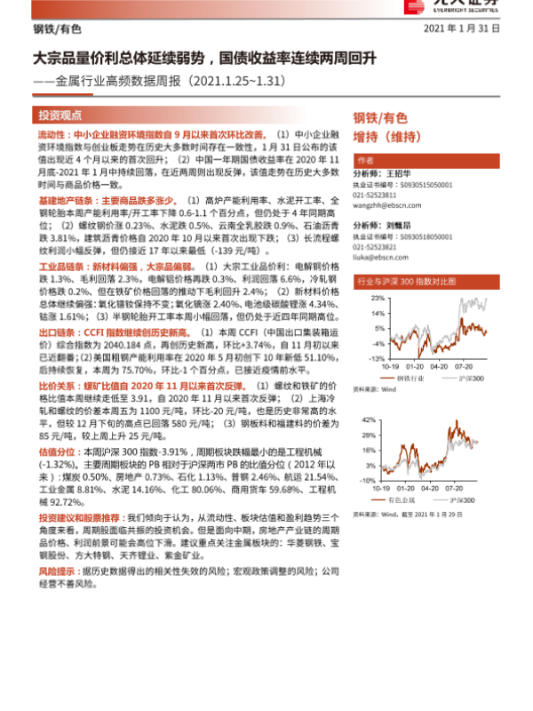 【光大证券】【20210131】20210131-光大证券-金属行业高频数据周报:大宗品量价利总体延续弱势,国债收益率连续两周回升-16页 行业研究