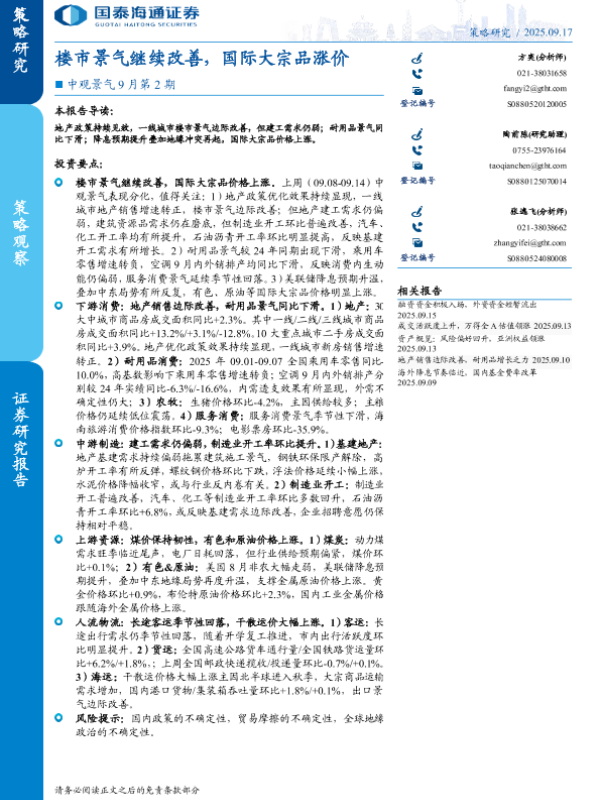 【国泰海通证券】【202509】楼市景气继续改善,国际大宗品涨价-11页 证券期货研究报告