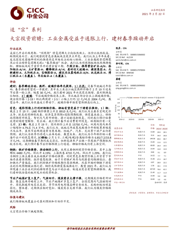 【中金公司】【20210222】追“宗”系列:大宗投资前瞻:工业金属受益于通胀上行,建材春季躁动开启-21页 行业研究