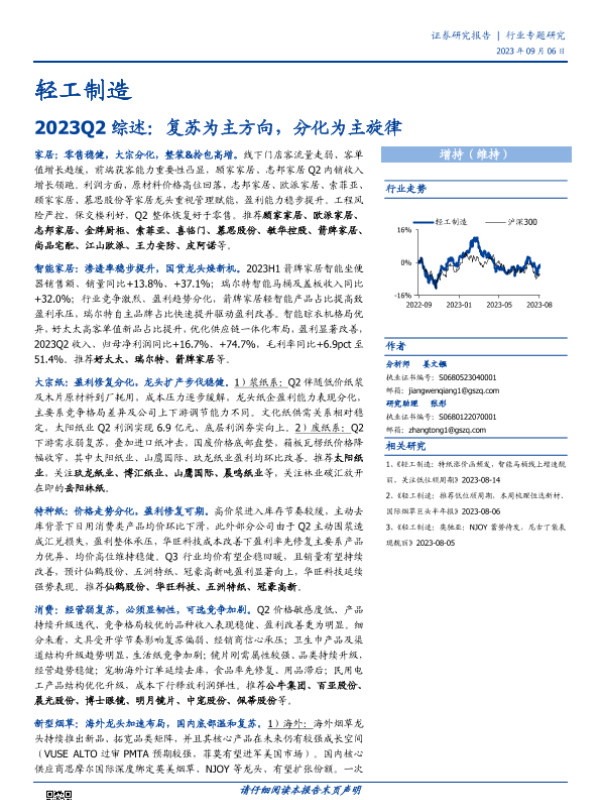 【国盛证券】【20230906】轻工制造行业2023Q2综述:复苏为主方向,分化为主旋律-38页 行业研究