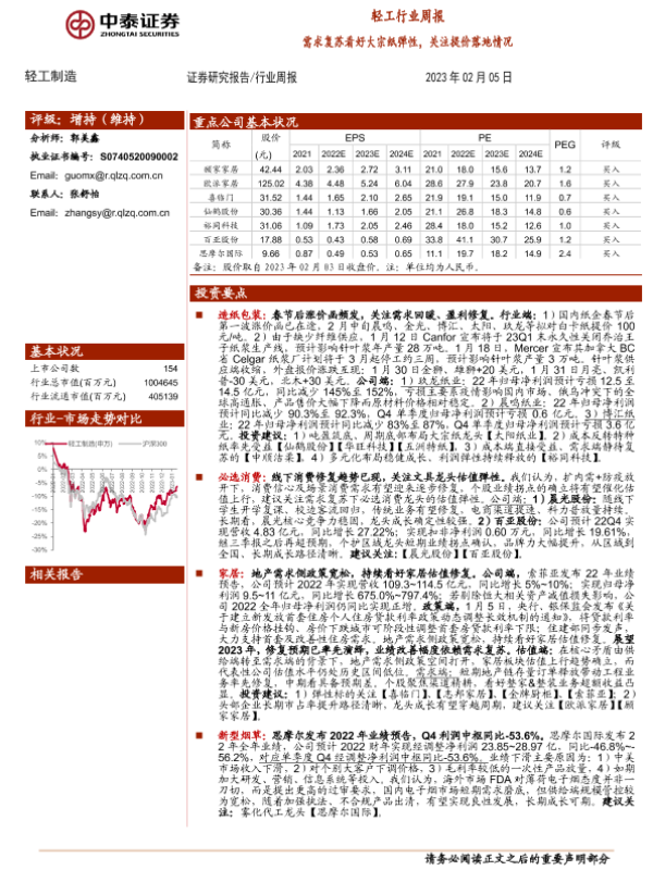 【中泰证券】【20230205】20230205-中泰证券-轻工制造行业周报:需求复苏看好大宗纸弹性,关注提价落地情况-15页 行业研究