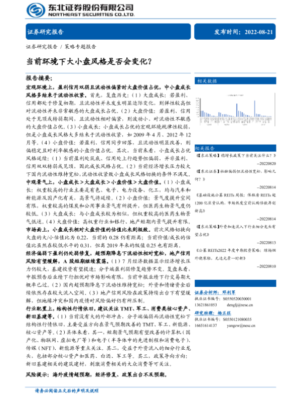 【东北证券】【20220821】当前环境下大小盘风格是否会变化?-28页 行业研究